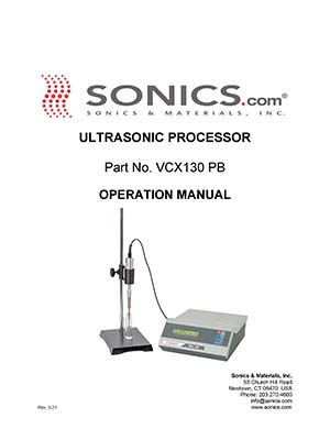 SONICS ultrasonic probe sonicator,VCX 130PB:Features a thumb pulse generator or foot switch for safe handling of various organic and inorganic materials, from 150 microliters to 150 milliliters. Typical applications include biotechnology and pharmaceutical processing, including mixing, dispersion and sample preparation uses.